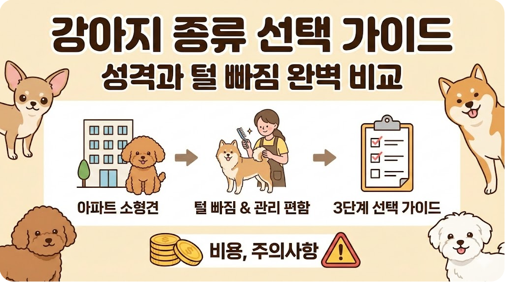 전 세계 강아지 종류는 다양하지만 내 환경에 맞는 견종은 따로 있습니다. 아파트 생활에 적합한 소형견부터 관리가 편한 견종까지, 후회 없는 선택을 위한 3단계 선택 가이드와 비용, 주의사항을 전문가 관점에서 완벽히 정리해 드립니다.
